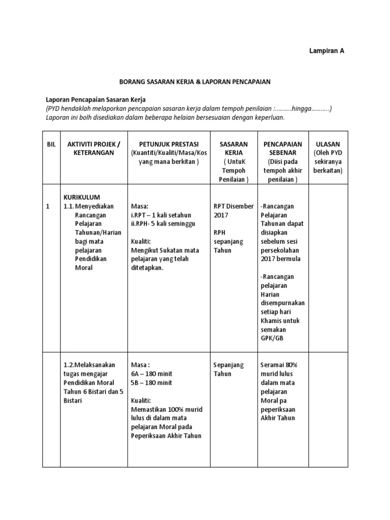 Doc Lampiran A Borang Sasaran Kerja Laporan Pencapaian Sang Kaya Academia Edu